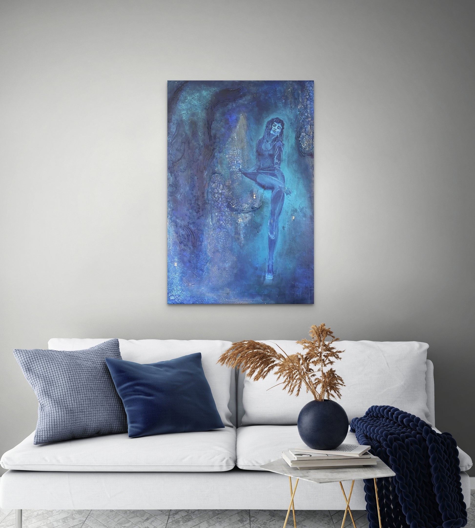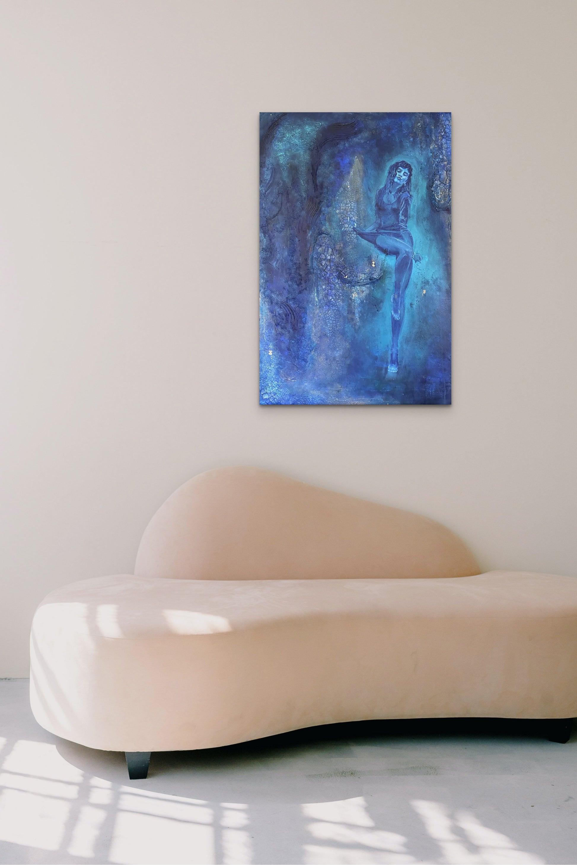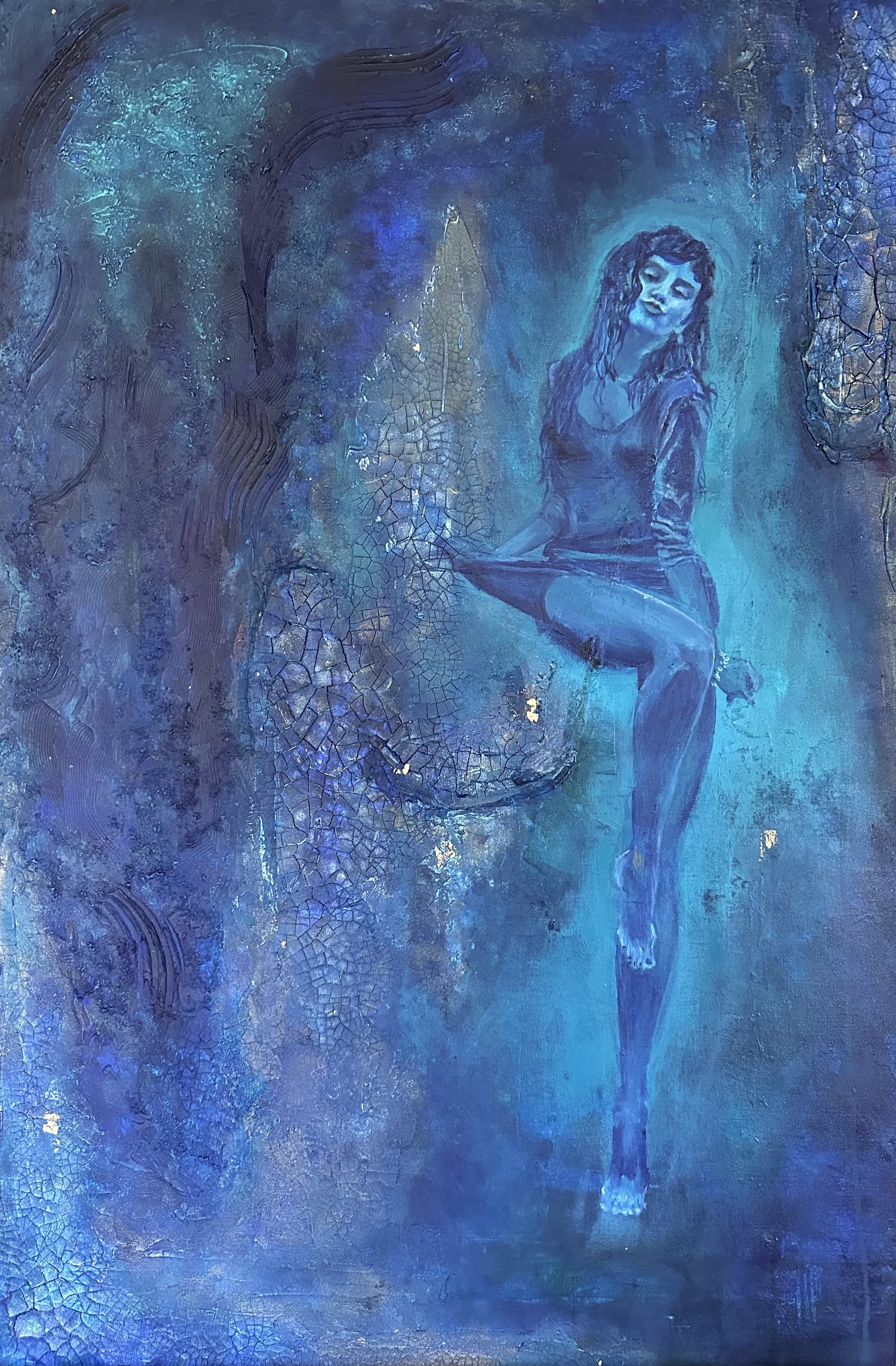 Size 24" x 36". This painting portrays the elusive mystery within a dream, where the woman materializes from the dream's ethereal mist into your reality.