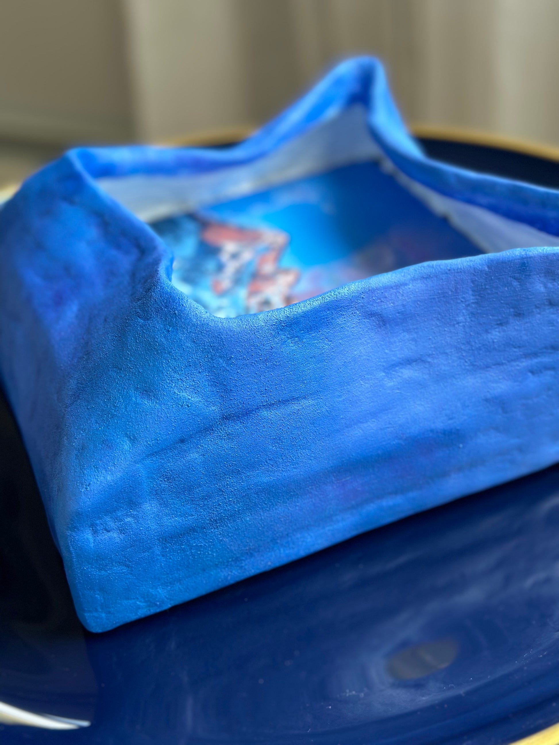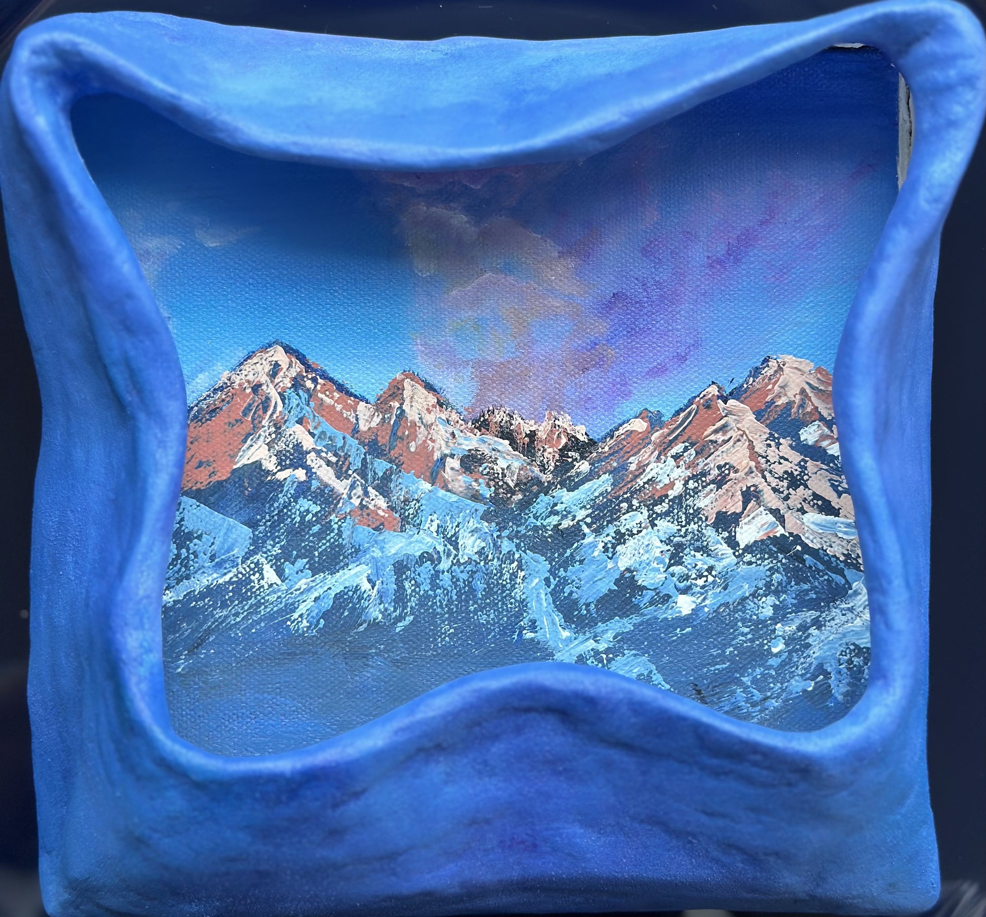 Artwork dimensions: 8 inches by 8 inches. Original artwork decorated with a sculpted frame. This painting is suitable for a variety of spaces. Painting is available for purchase as a set of 2 or 3.