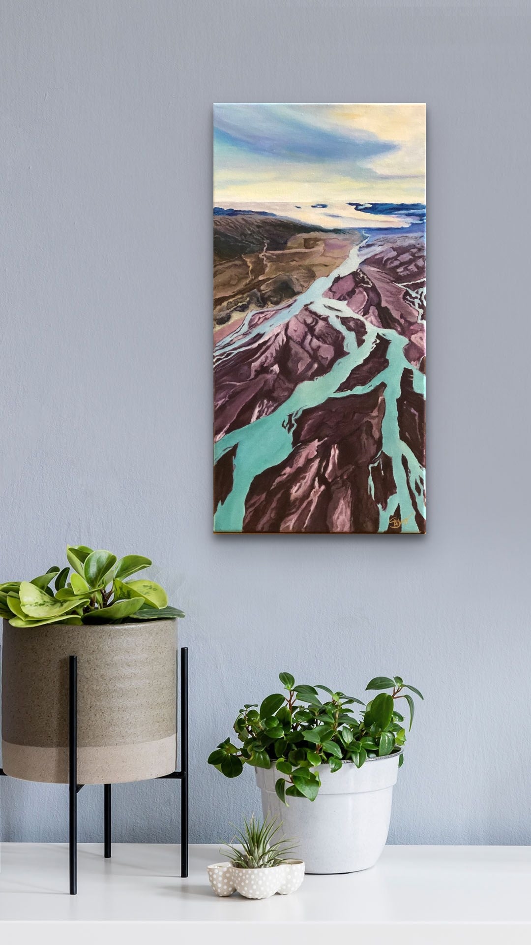 Size 10" x 20". Hand-made product with acrylic. Great decoration for multiple spaces. This painting has a gloss finish. Artwork requires no framing, as all edges are beautifully finished.